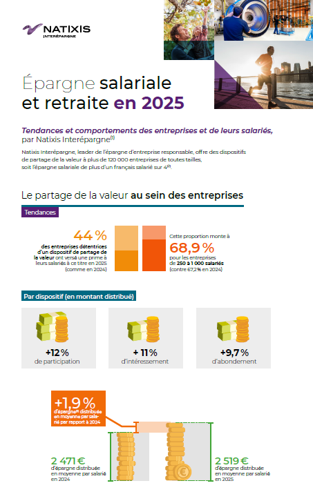 Natixis Interépargne, leader de l’épargne d’entreprise responsable, décrypte et analyse en quelques chiffres clés l’évolution des pratiques de partage de la valeur en 2025 :