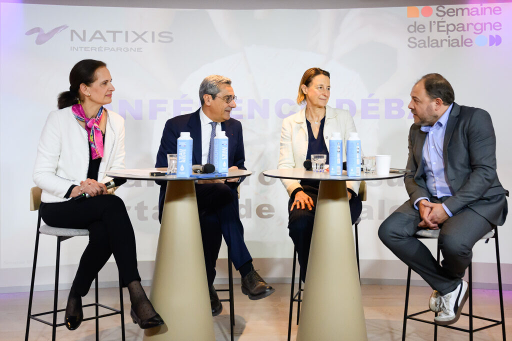 Dominique Dorchies, directrice générale déléguée de Natixis Interépargne a fait dialoguer le ministre avec Laure Delahousse directrice générale de l’AFG et Philippe Petitcolin expert confédéral de la CFE-CGC, secrétaire du Collectif Reconstruire.