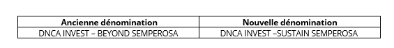 Nous vous rappelons que votre FCPE est nourricier du compartiment « DNCA INVEST – BEYOND SEMPEROSA » de la SICAV « DNCA INVEST » gérée par DNCA FINANCE (ci-après, « le Compartiment maître »)